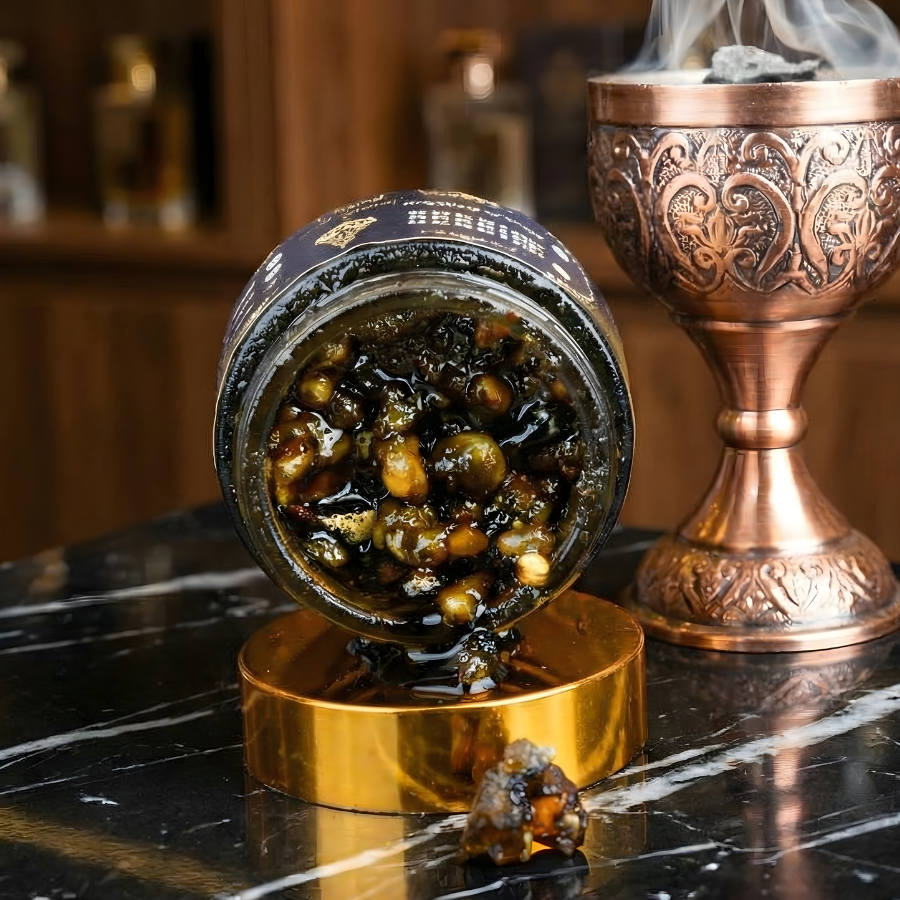 Un chef-d’œuvre parfumé à base de Louban royal, enrichi de bois de santal, ambre, musc, safran, et oud royal sous toutes ses formes – fumé, en poudre, et naturel. Une composition luxueuse qui évoque la noblesse des traditions orientales.